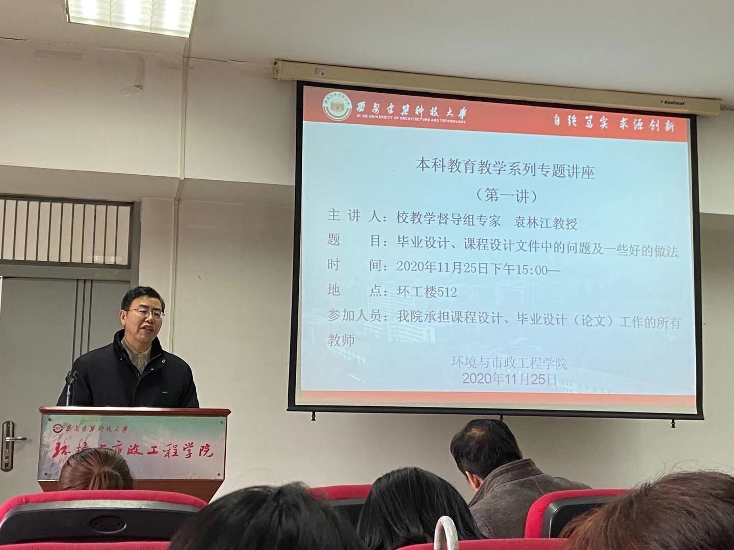 相关教师作此次讲座,并表示当前各专业即将进入课程设计阶段,要求参会教师认真学习讲座内容,务必重视学生设计(论文)指导,要求过程严谨,文件规范。