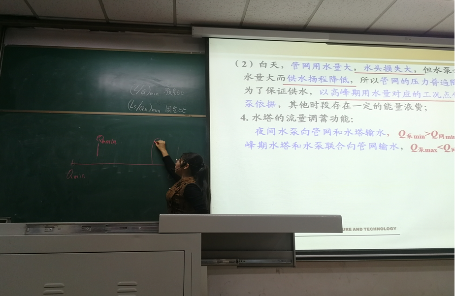 给排水科学与工程教研室组织专业教师通过随堂观摩课程的形式,对教学方式方法等展开学习和讨论。教研室主任张建锋和副主任王俊萍牵头组织,并邀请校督导组王宝泉老师进行指导,给排水科学与工程教研室全体教师均参加了此次活动。观摩课程包括文刚老师的《水分析化学》、王俊萍老师的《水文学》和王旭冕老师的《泵与泵站》。