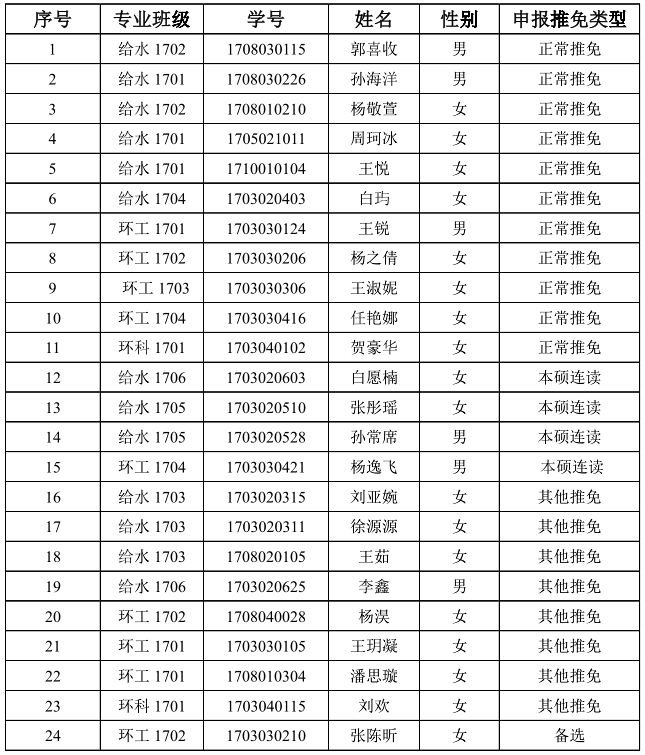 依据学校《关于做好2021年免试研究生推荐工作的补充通知》精神和《spbo1手机比分 推荐2021年优秀应届本科毕业生免试攻读研究生工作实施方案》相关规定,经学生本人自愿申请,教学办、学工办组织核查相关佐证材料,学院推免工作小组审定,拟推荐以下23名同学和1名备选同学为2021年免试硕士研究生,现予以公示,以征求广大师生意见。