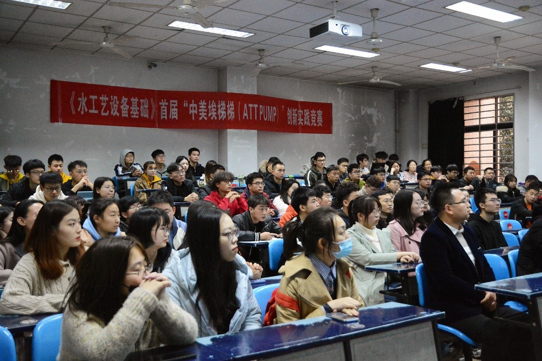 为了增强《水工艺设备基础》课程趣味性,提高同学们自我学习热情和实践能力,2018级给排水科学与工程专业《水工艺设备基础》首届“中美埃梯梯(ATT PUMP)”创新实践竞赛答辩会于2020年11月21日下午15:00-17:00在南阶202、203、204、205教室顺利召开。参加本次答辩会的有spbo1手机比分