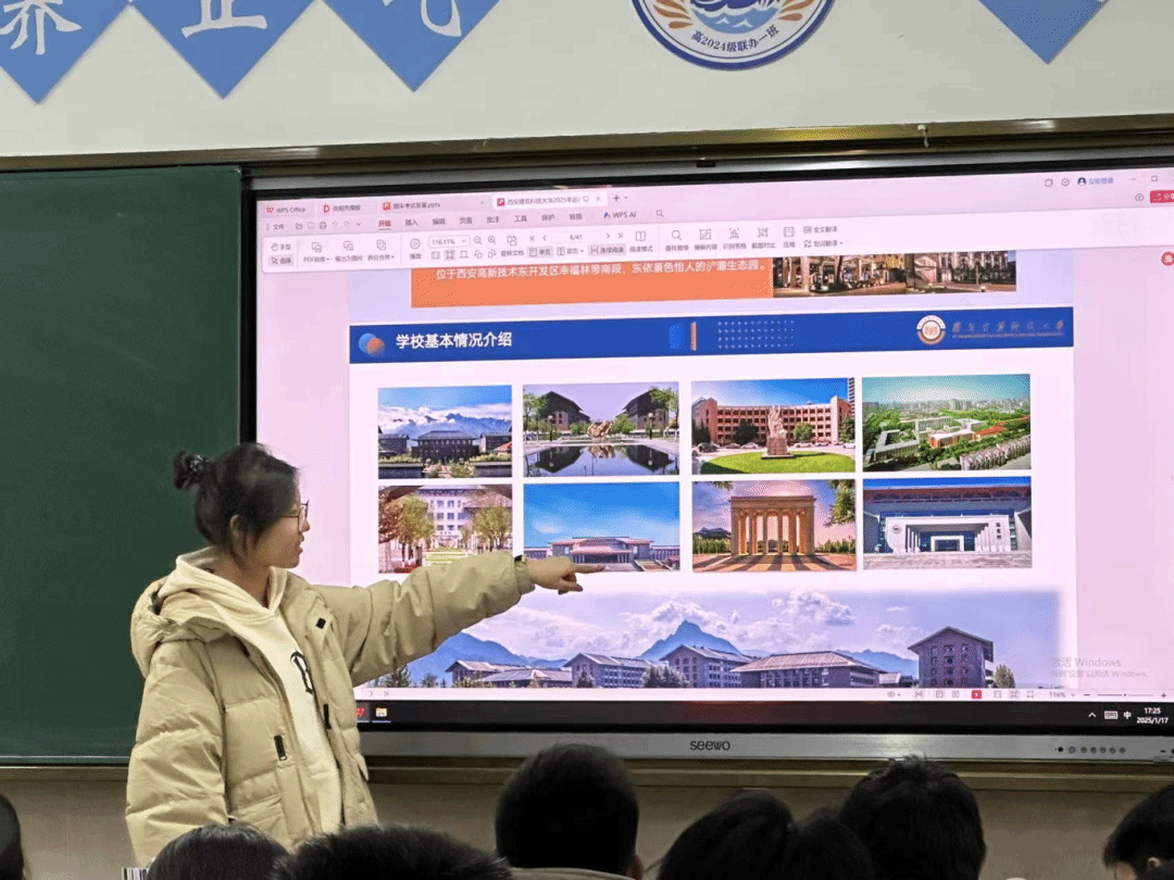 登上讲台,我详细介绍了西安建筑科技大学,分享了大学生活和高中学习经验,学校的美景引起了大家浓厚的兴趣。