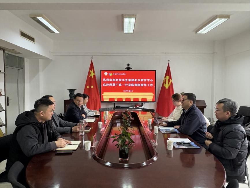 3月12日,北控水务集团北水教育中心总经理冀广鹏、西安区域总经理助理刘璞、北水教育项目主管刘子莹等一行来足球比分app 开展校企合作交流。足球比分app 党委书记曹宏伟,党委副书记、副院长付胜伟,学工办主任冯永宁,团委书记辛欣等出席会议。