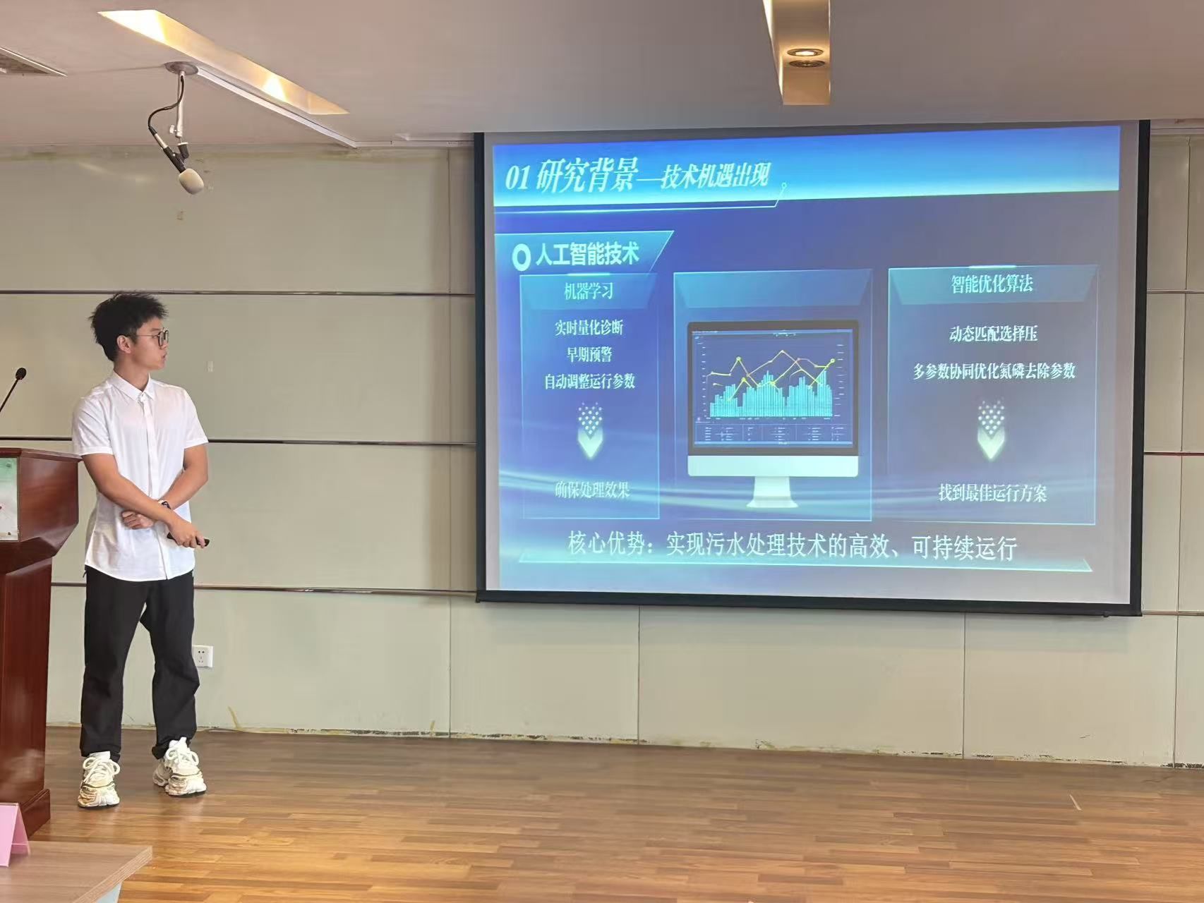 各参赛队伍根据抽签顺序依次进行答辩,围绕AI技术在环境领域的应用展开精彩展示,从原创模型结构突破,到跨领域融合方案,各团队聚焦科研与学习痛点,用具体数据证明应用价值,展现技术普适性与推广潜力。作品逻辑清晰、成果多元,数据可视化直观呈现,尽显团队成员在人工智能应用上的创新能力与实践水平。评委围绕作品创新性、实用性、可推广性、完成度四大维度进行评分并给予专业建议。