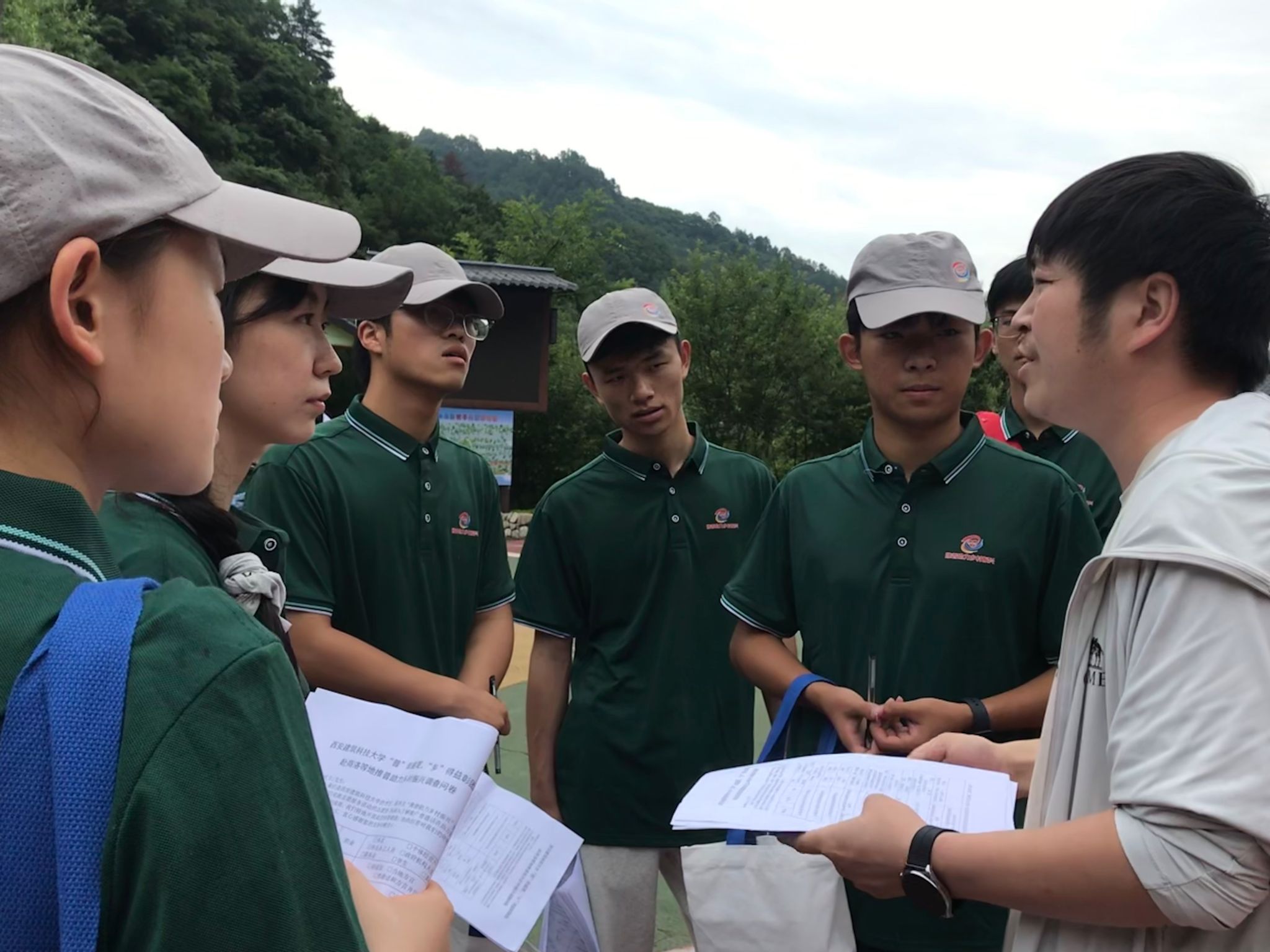 图为团队成员在终南山寨与景区负责人进行交流,了解景区工作人员与游客的普通话使用情况。杨欣悦 摄